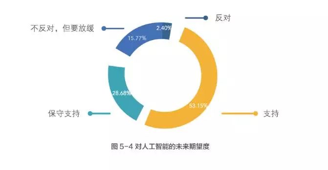 1)國(guó)民認(rèn)知:國(guó)民對(duì)人工智能認(rèn)知度高,超半數(shù)受訪者支持其全面發(fā)展。今日頭條的問卷調(diào)查顯示,只有6.23%的受訪者對(duì)人工智能不了解;53%受訪者支持人工智能全面發(fā)展,而持保守態(tài)度的為27%。