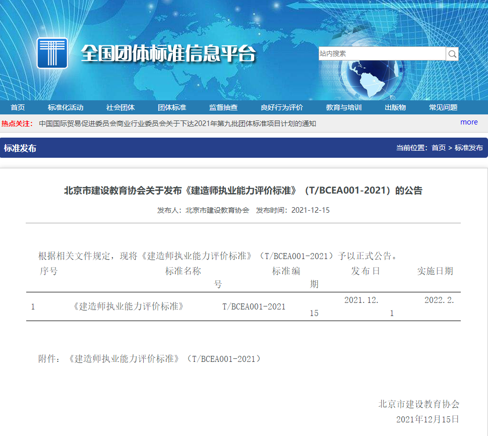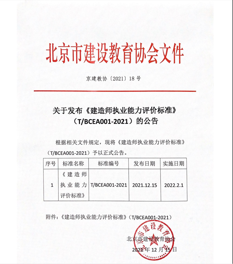 2021年12月15日,北京市建設(shè)教育協(xié)會(huì)發(fā)布了《建造師執(zhí)業(yè)能力評(píng)價(jià)標(biāo)準(zhǔn)》(T/BCEA001-2021)公告。該標(biāo)準(zhǔn)將在2022年2月1日起開(kāi)始實(shí)施。 標(biāo)準(zhǔn)可作為管理機(jī)構(gòu)、用人單位對(duì)建造師管理及聘用的依據(jù),并可作為建造師行業(yè)能力發(fā)展標(biāo)準(zhǔn)的指引,助力工程建筑企業(yè)進(jìn)行數(shù)字化轉(zhuǎn)型升級(jí)。
