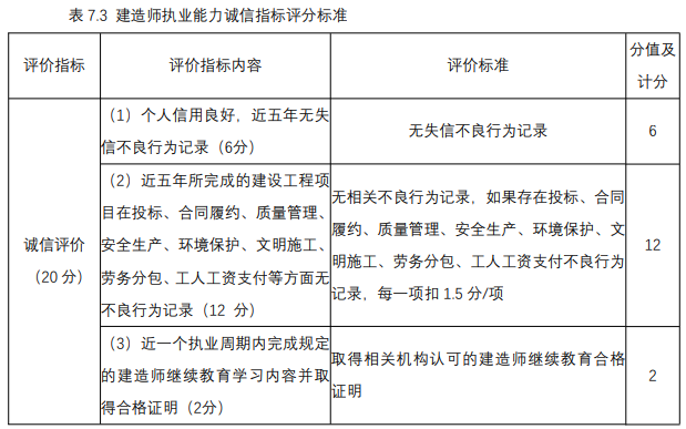 建造師執(zhí)業(yè)能力誠(chéng)信指標(biāo)按表中的標(biāo)準(zhǔn)評(píng)分。
