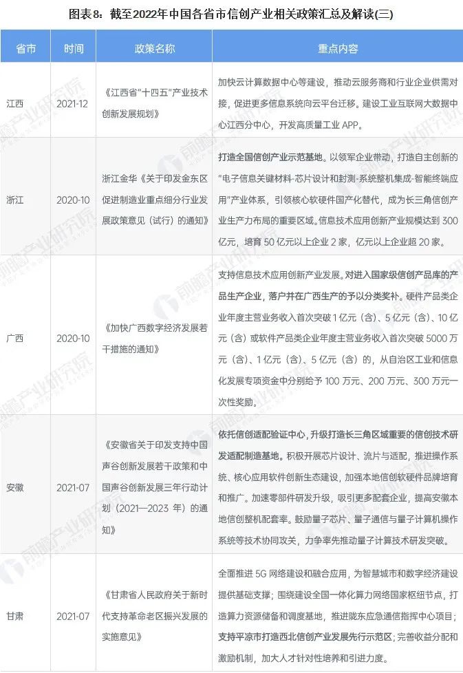 ——31省市城市信創產業政策匯總