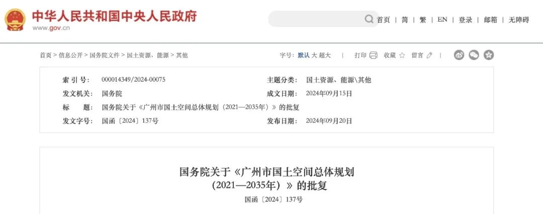 行業(yè)政策?|?國務(wù)院批復(fù)!廣州市國土空間總體規(guī)劃!