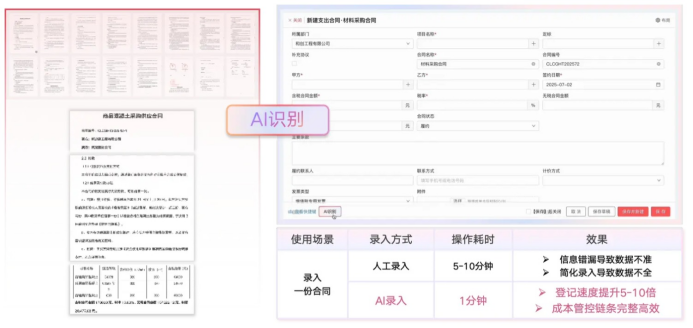 紅圈AI系列智能產品深刻切入這一核心場景,“AI錄單助手”通過大模型自動識別合同、結算單、出入庫單等各類單據,實現從圖像識別到系統錄入的秒級閉環,智能提取關鍵字段并自動回填,可減少90%的人工操作,極大提升了成本數據錄入的效率和準確性。同時,“AI報表助手”能夠秒級解析如《成本多算對比分析表》等業務報表,快速識別數千條成本清單的潛在風險,自動定位異常指標并生成根因解讀與改善建議,將成本核算準確率提升2.5倍,讓成本管控更加敏銳和敏捷。
